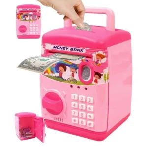 Electronic Piggy Bank ATM for Kids – Password Protected Mini Money Safe Box with Coin Slot, Note Insertion and Secret Lock Toy (3002)