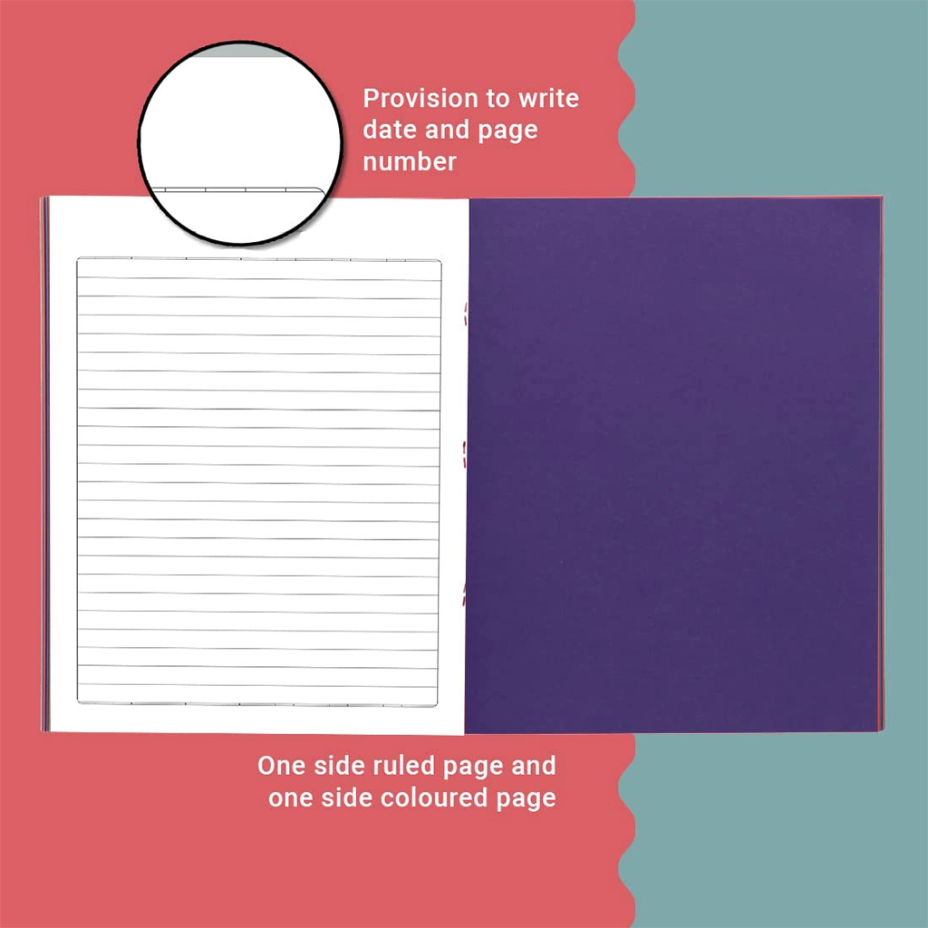 - The paper used in this book is thick and in interleaf format, which means one sheet has a single line ruling on the front and back and the next one is plain and in solid colour.