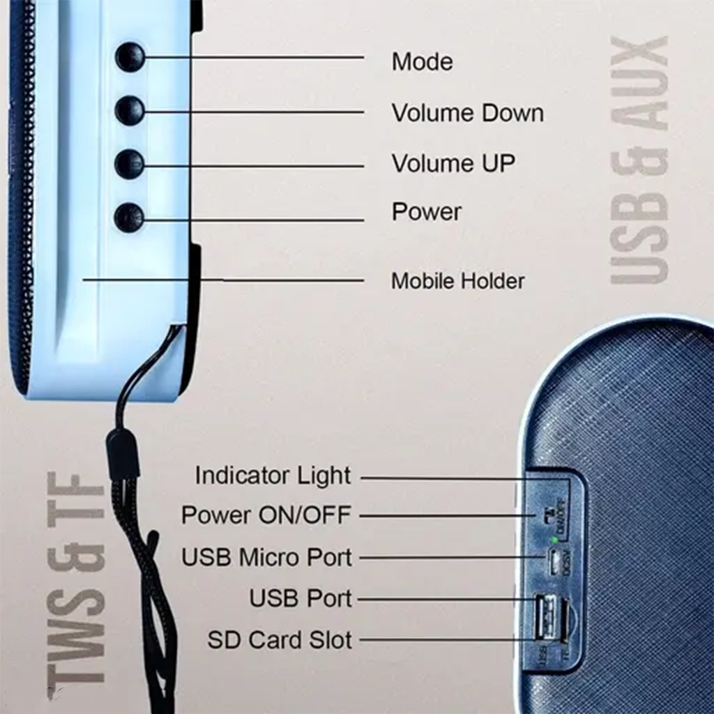 Equipped with a high-performance subwoofer and dual drivers, enjoy crystal-clear treble and booming bass—ideal for home entertainment, parties or outdoor use.