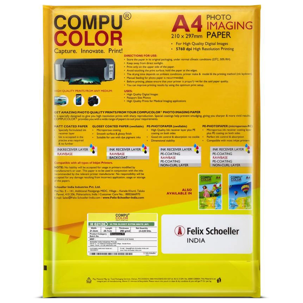 Compu Color Ultra Glossy Photo Paper – Unruled 4×6 Inch 250 GSM High-Quality Prints for Every Occasion (50 sheets, 101.6×152.4mm, Set of 1, White)