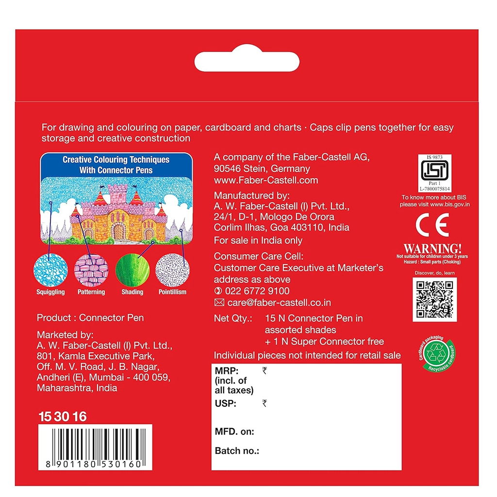 Faber Castell Water Colour Sketch Pens – Connector Pens 15 Shades, Vibrant Creativity for Artists and Kids (Pack of 1)