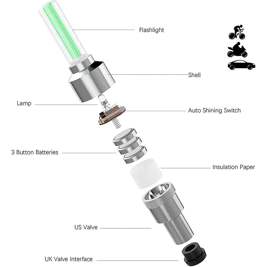 • 2 x LED Flash Wheel Valve Cap Lights