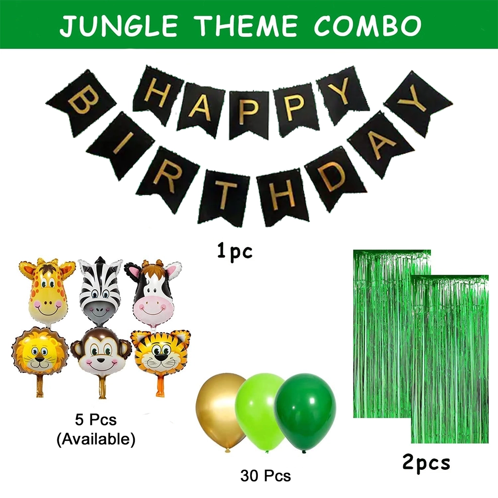 Bring the jungle to life! Order your Happy Birthday Jungle Theme Combo Decoration Set today and make your celebration extraordinary.