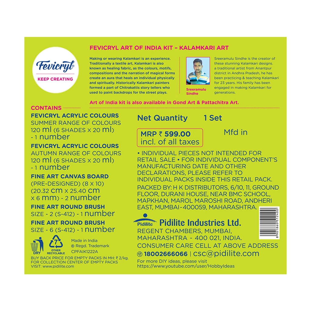 Pidilite Fevicryl DIY Art of India Kalamkari Art Kit – Traditional Hand-Painted Art Experience (Pack of 1)