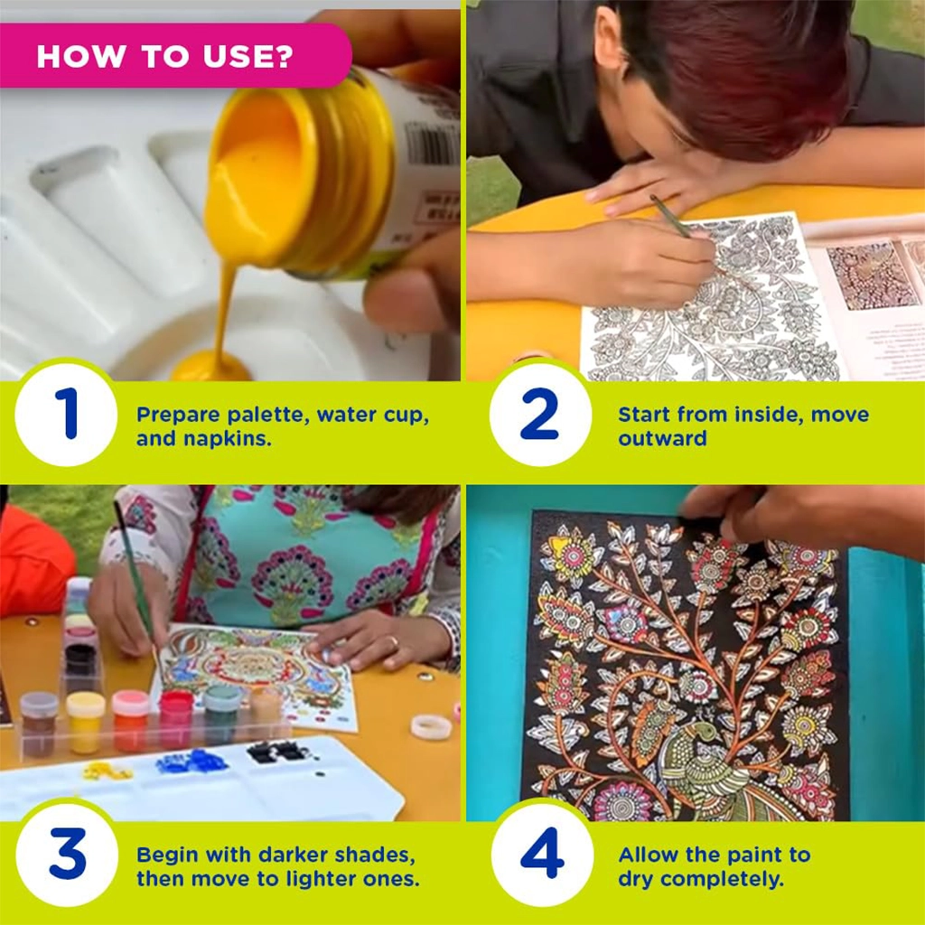 ✅ Complete DIY Set – Includes fabric, brushes, Fevicryl acrylic colors and step-by-step instructions.