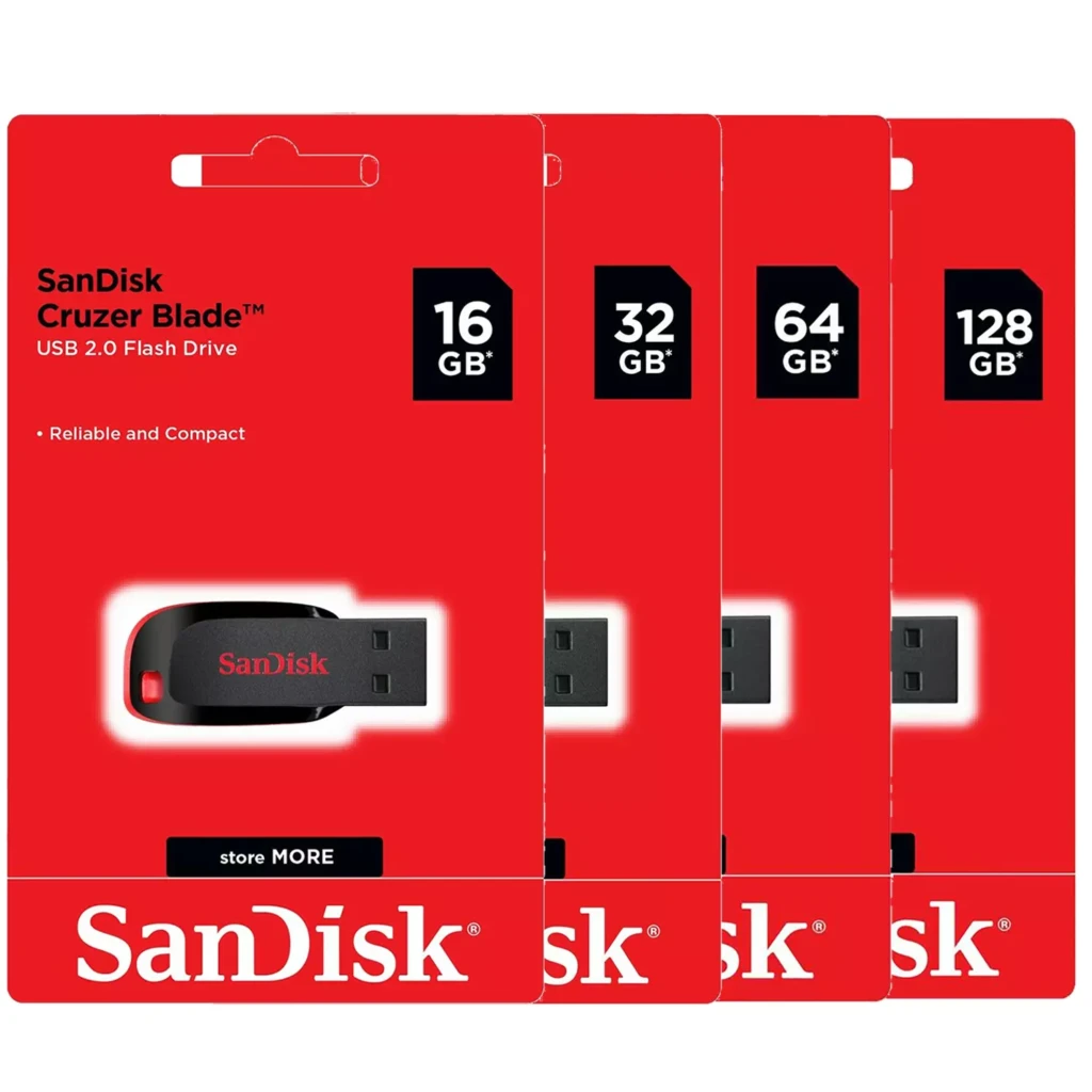 SanDisk Cruzer Blade USB 16Gb 32GB 64GB 128GB Flash Pen Drive (Pack of 1)