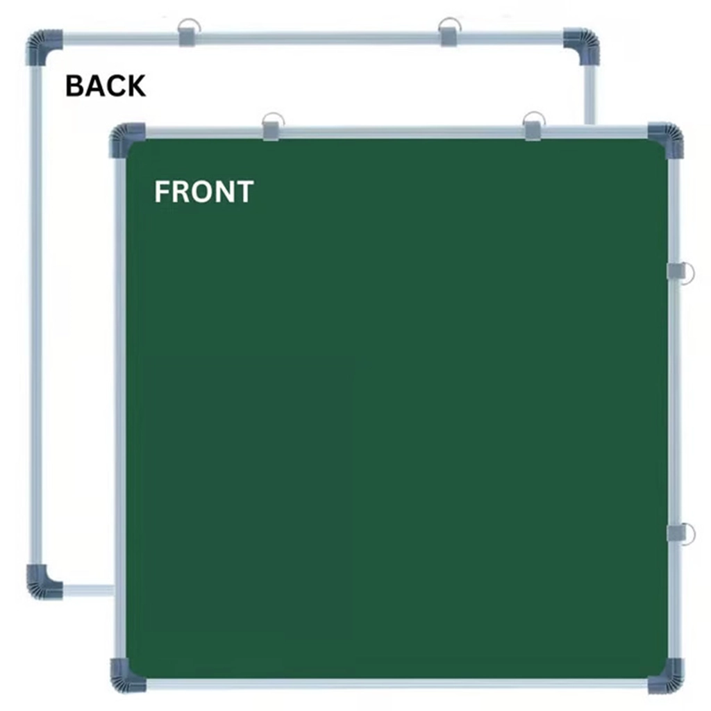 - The dual advantage of writing with a marker on a white surface and with chalk on the reverse green surface